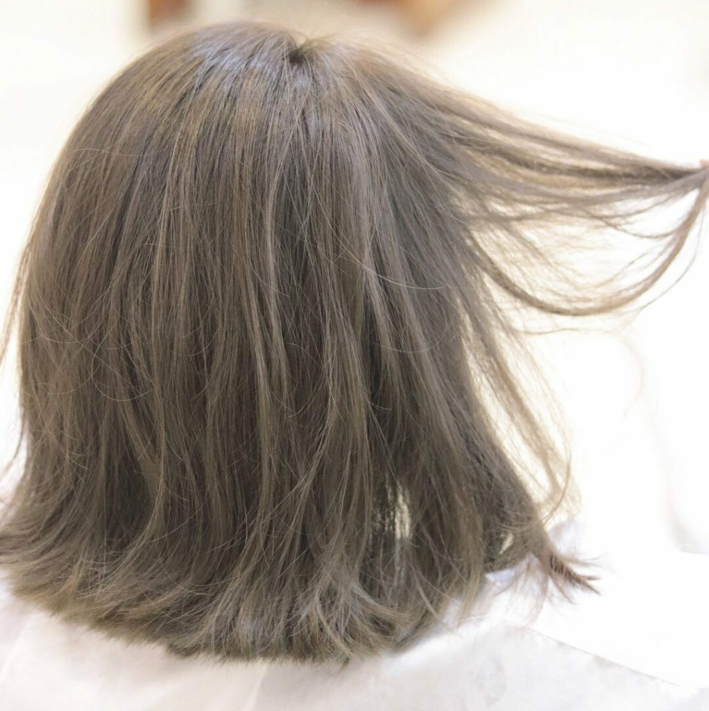 黄みをおさえながら、なめらかなグレージュに仕上がりました。