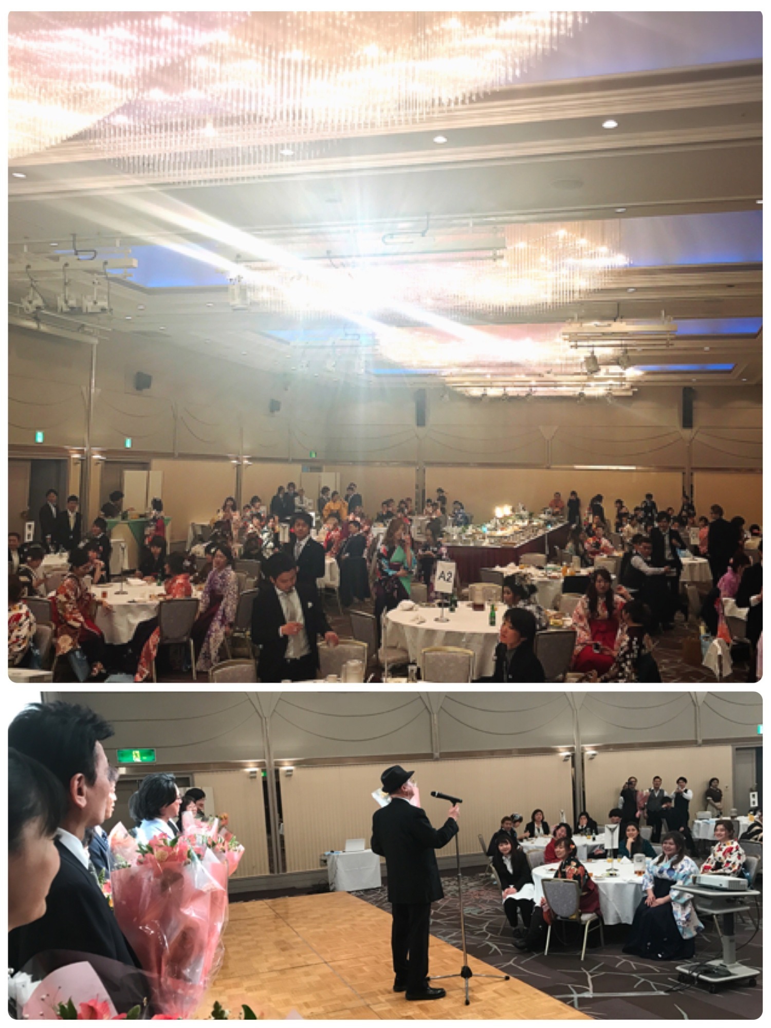 そんな中で途中に学生さん達の懇親会会場に講師陣は呼ばれ壇上で御礼の言葉と花束を頂きました。