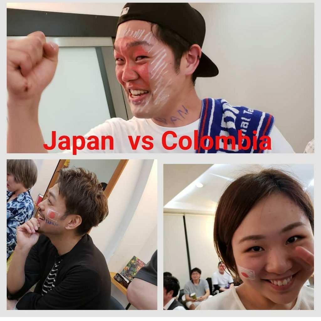 そして、夜はワールドカップ日本初戦も関西のスタッフと一緒に観戦!