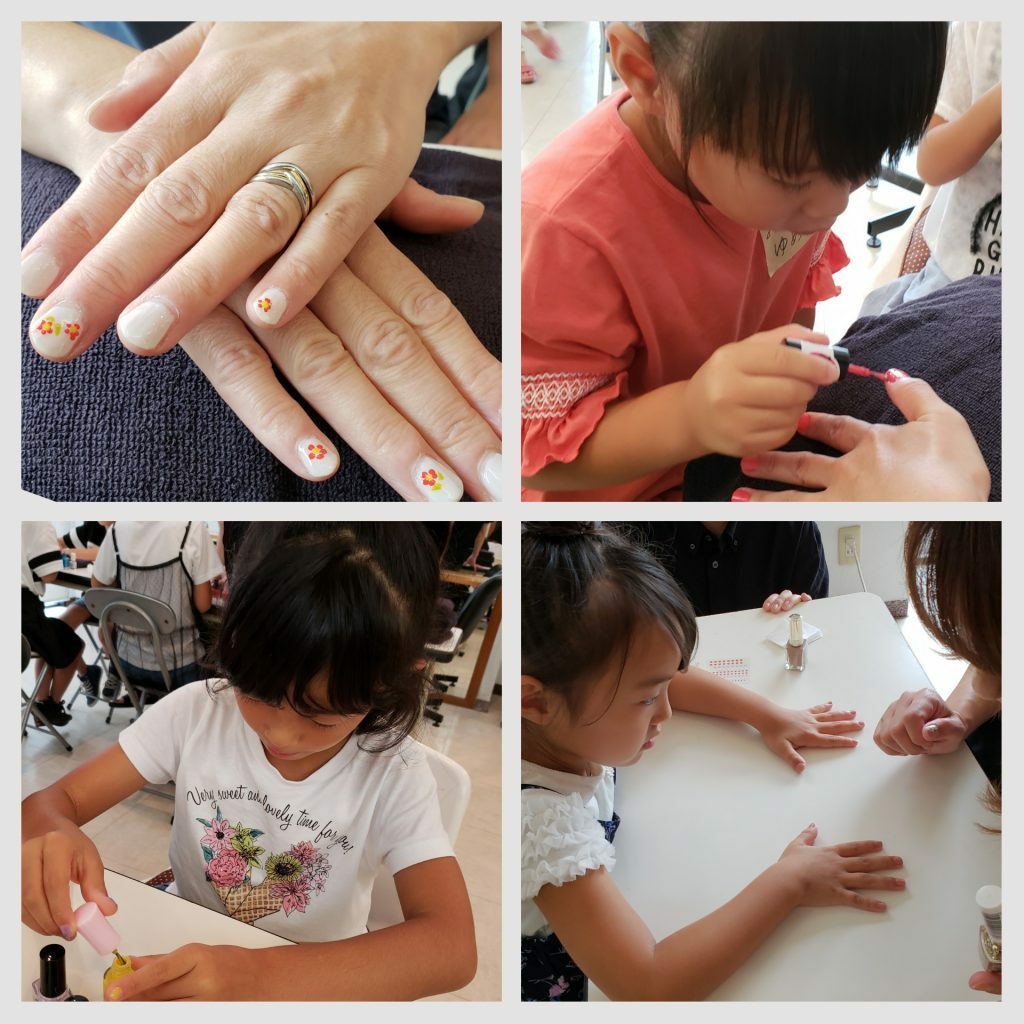 子供たちはシャンプー、ネイル、ヘアアレンジを一生懸命!