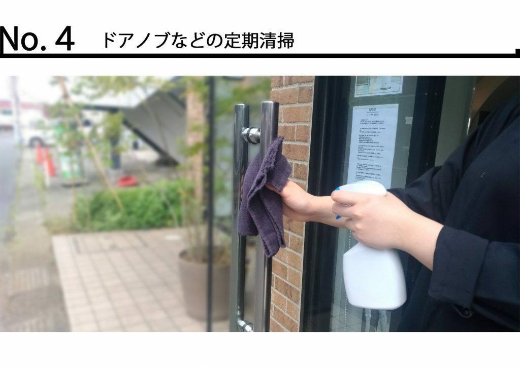 ・ドアノブやトイレなど、手にウイルスが付着するリスクのある場所を定期的に消毒をしています。