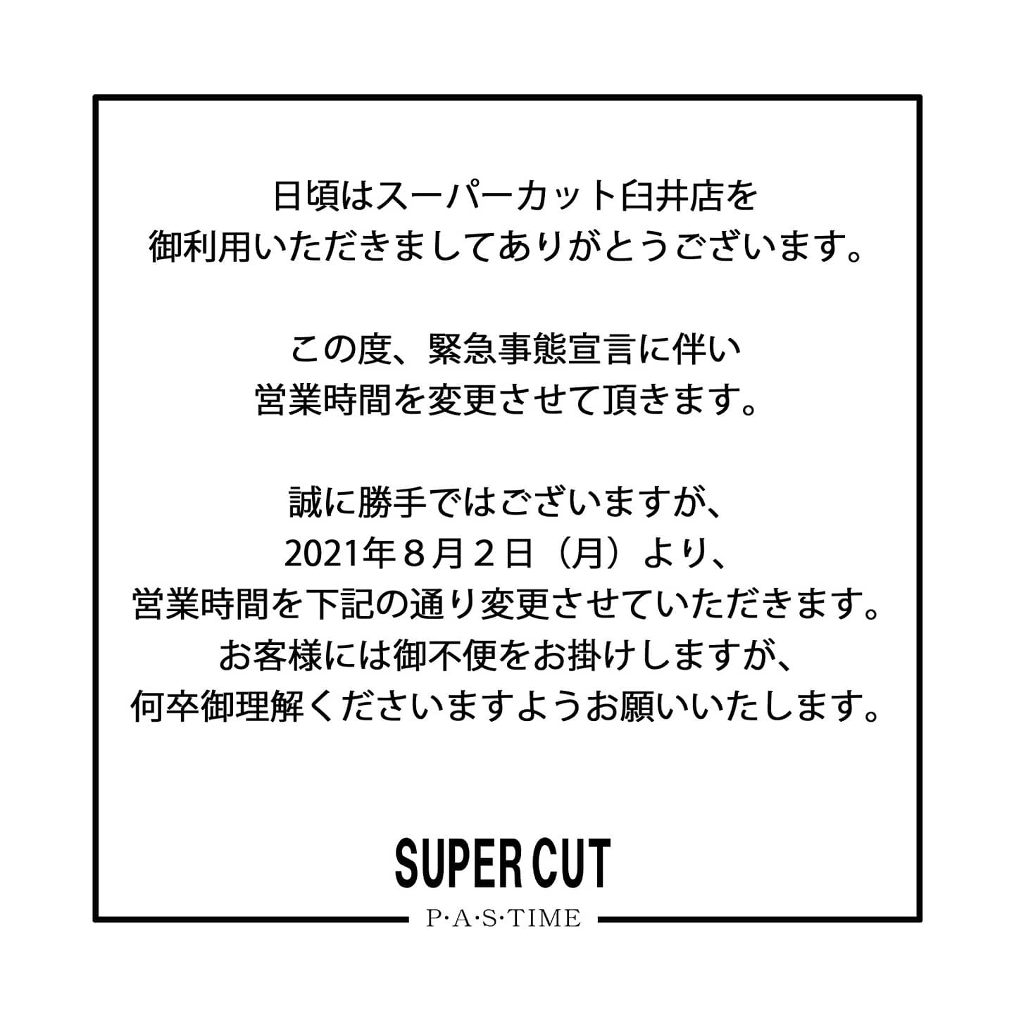 緊急事態宣言に伴い、営業時間変更のお知らせ - 臼井の美容室 スーパーカット