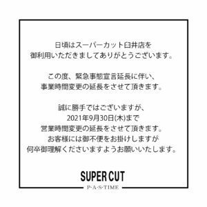 緊急事態宣言延長に伴い、営業時間変更の延長のお知らせ - 臼井の美容室 スーパーカット|市川・八千代台・ユーカリが丘の美容室スーパーカット