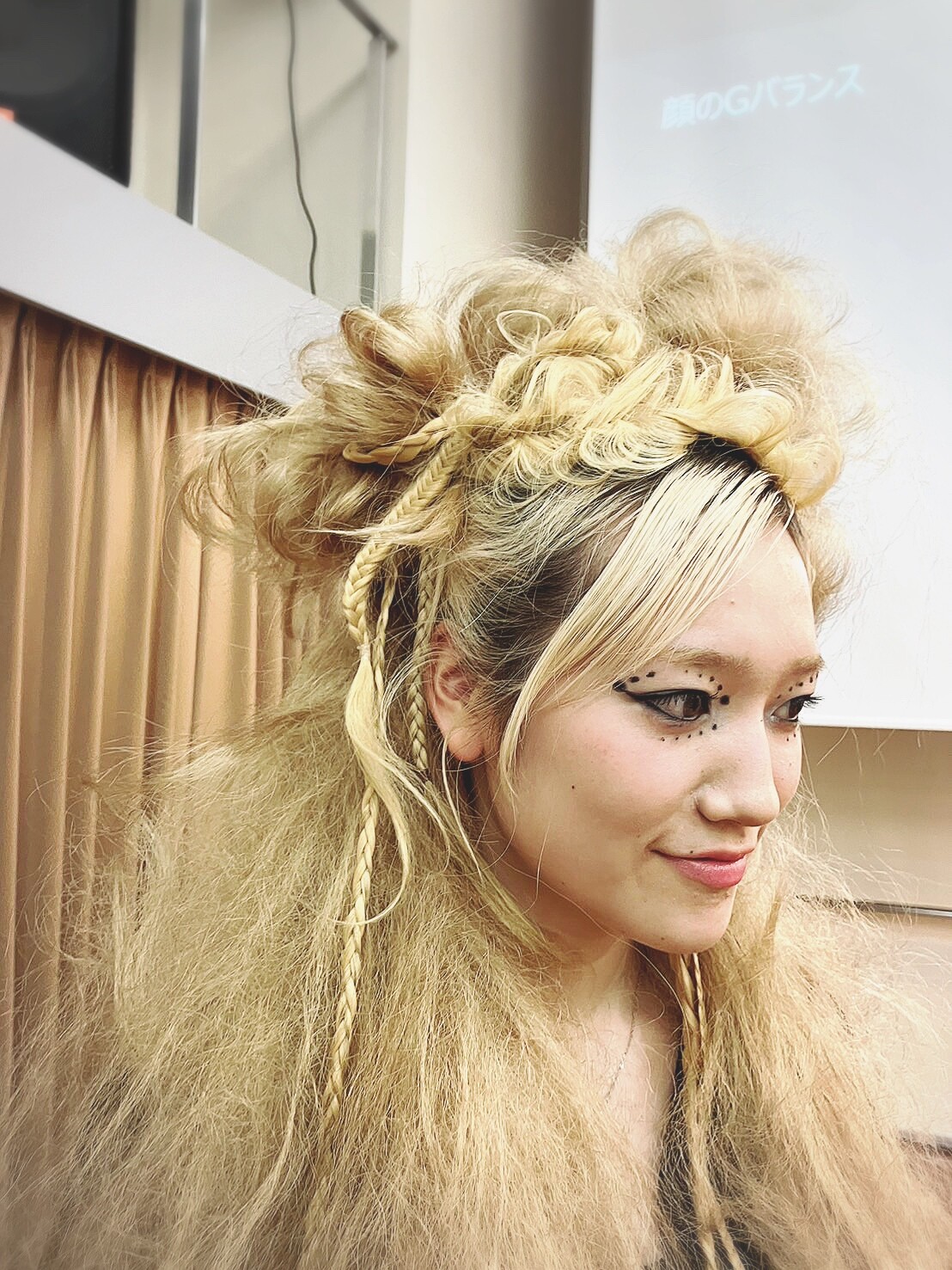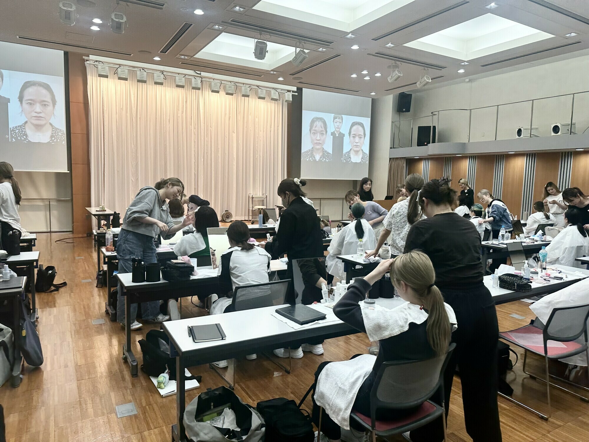 ヘアメイク授業❷大阪の高津理容美容専門学校はスタッフの多くの母校で万博開会ステージのヘアメイク展示