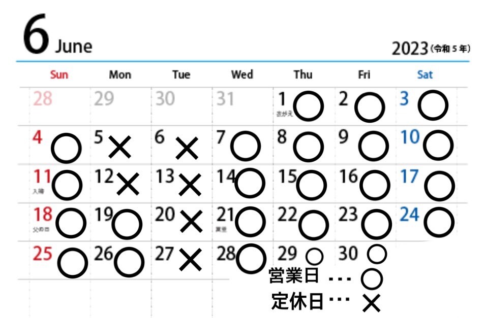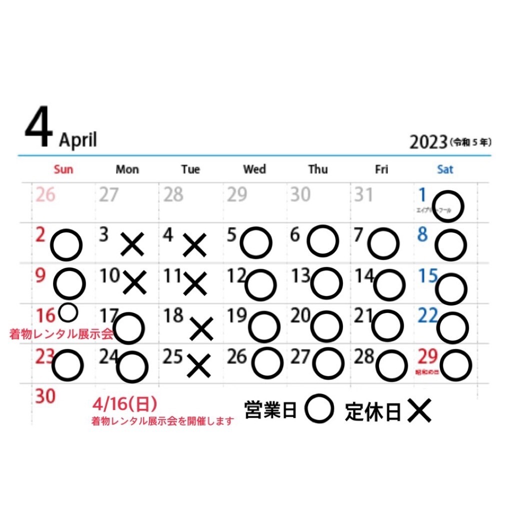 2023年 臼井店 4月、5月 営業日のお知らせ