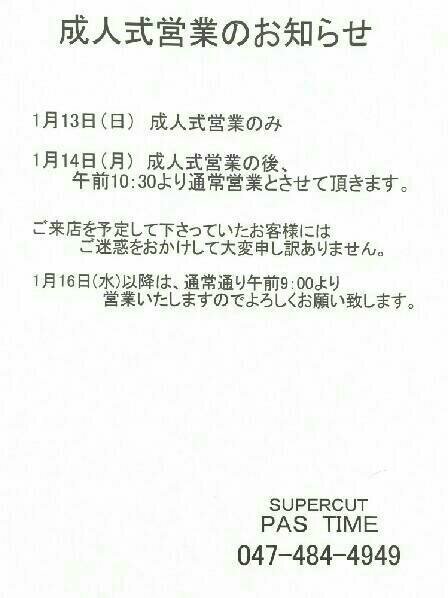成人式営業のお知らせ - 八千代台の美容室 スーパーカット