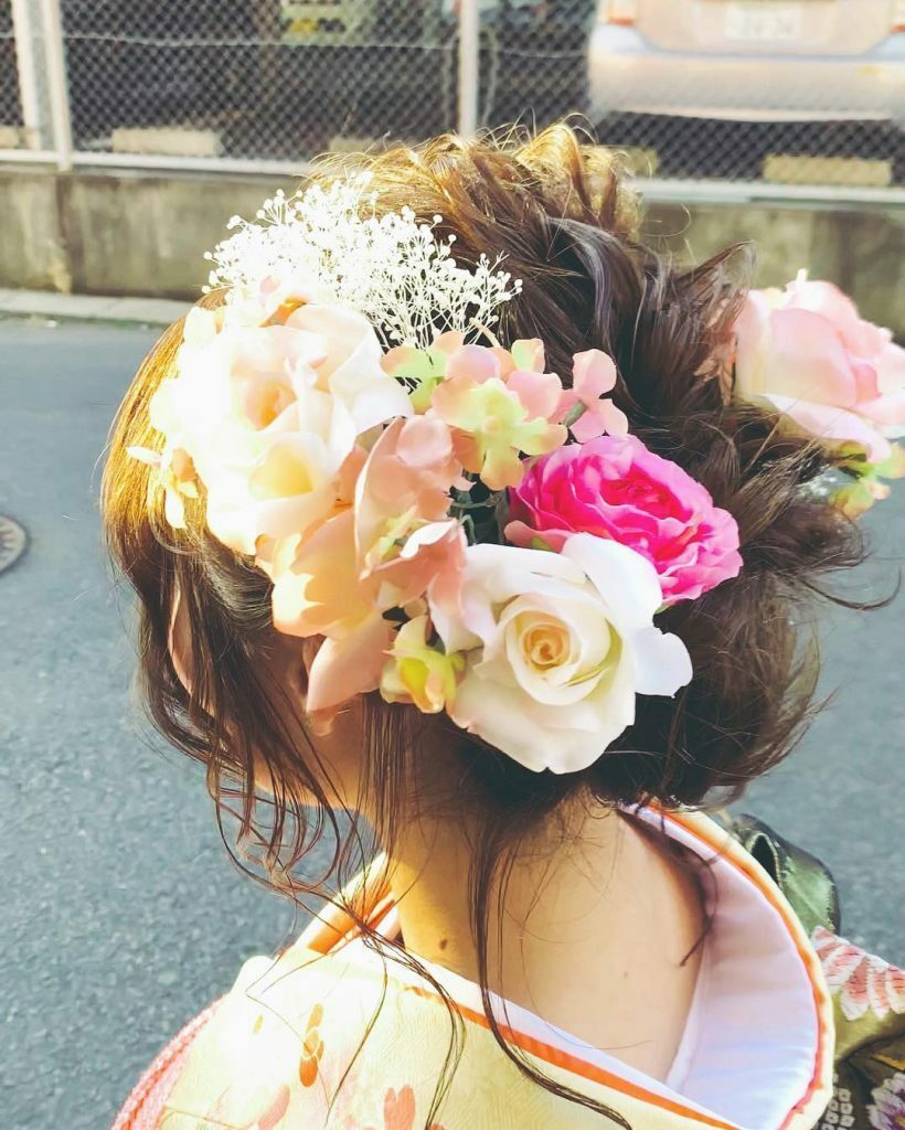 成人式前撮りwithドライフラワー髪飾り - ユーカリが丘の美容室 Tip&Toe