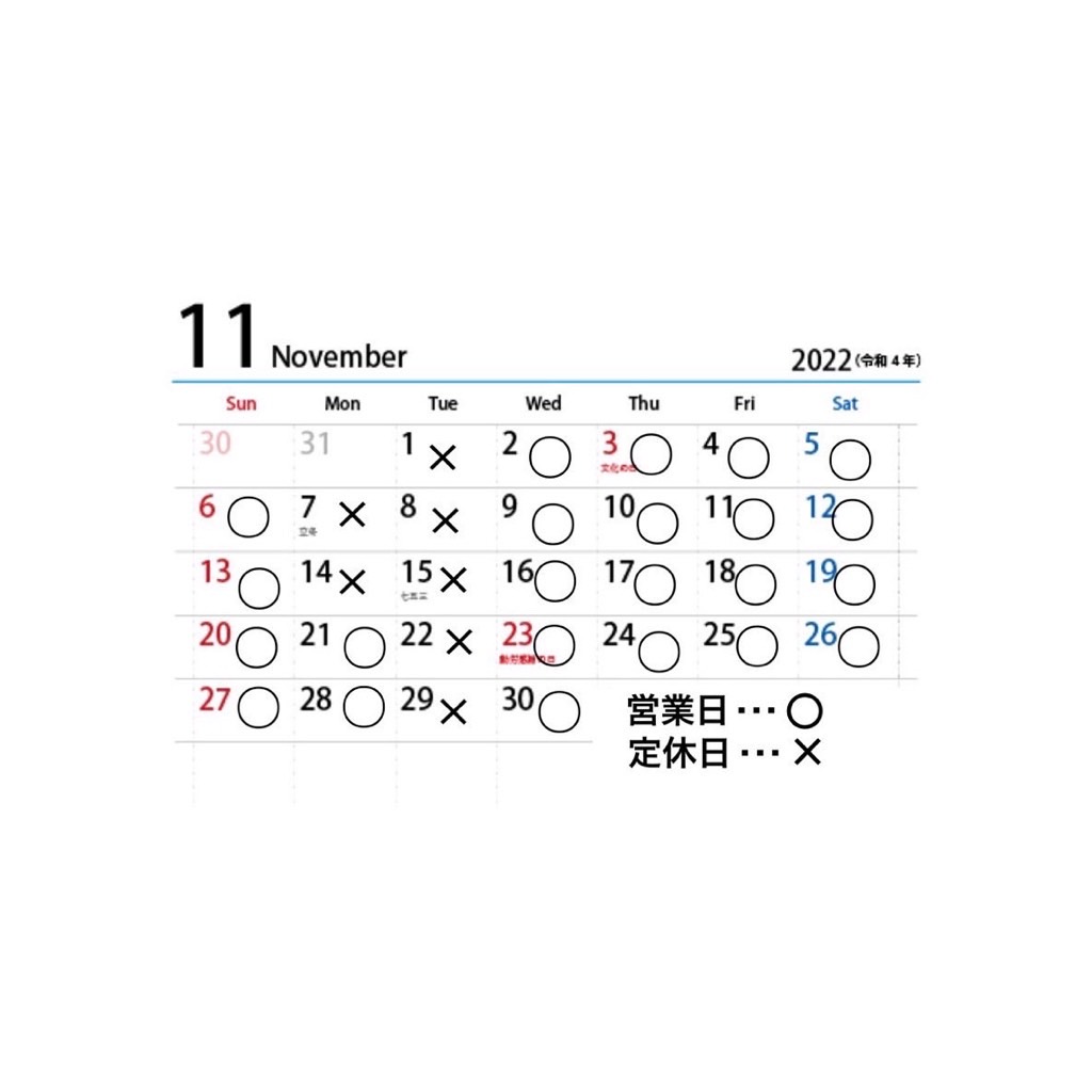 2022年11月 臼井店 営業日のお知らせ