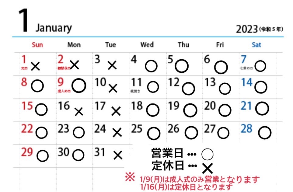 2022~2023年始営業時間のお知らせ