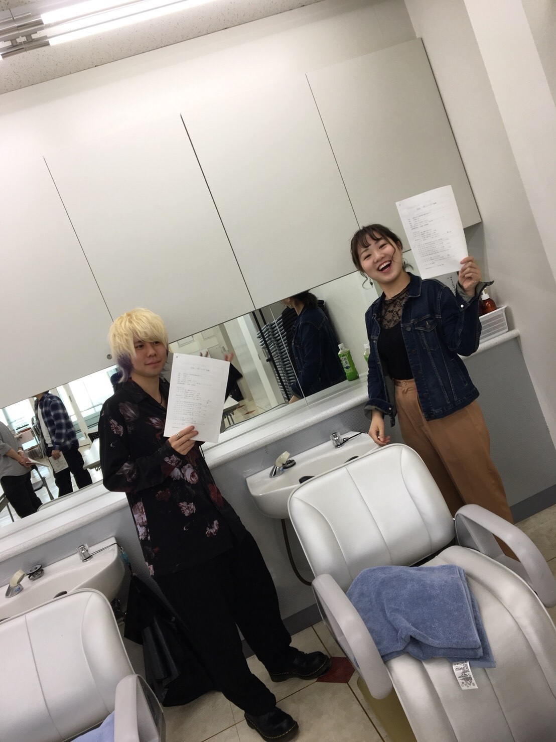 美容学校にて、シャンプー授業担当 サロン代表で、森口さん、佐藤君 スーパーカット臼井店 - 臼井の美容室 スーパーカット