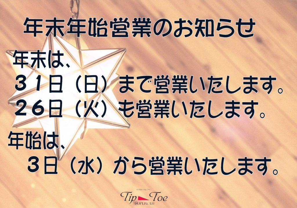 佐倉市美容室 TIP&TOE 年末年始の営業時間のお知らせ - ユーカリが丘の美容室 Tip&Toe