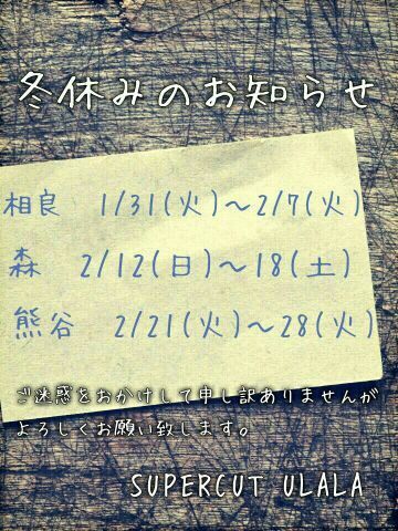 スタッフ冬休みのお知らせ - 京成大久保の美容室 SUPERCUT ULALA