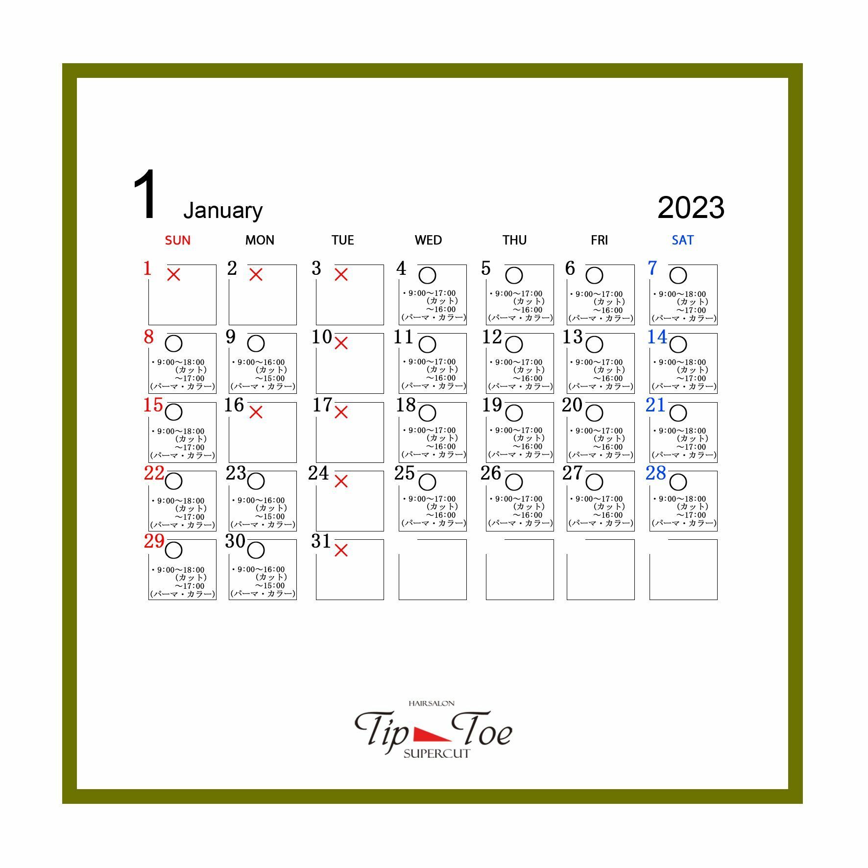 年末年始営業時間のお知らせ|市川・八千代台・ユーカリが丘の美容室スーパーカット
