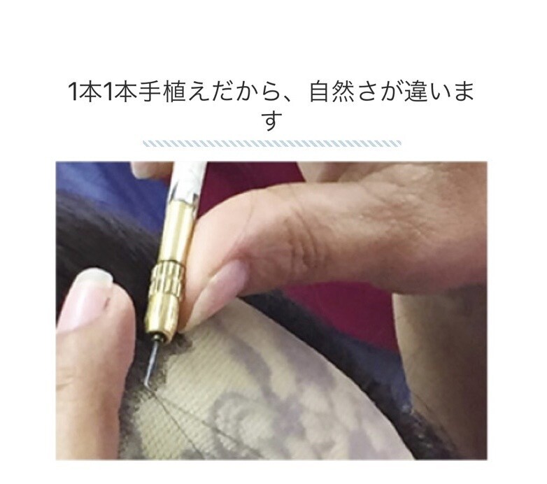 自然なウィッグのポイントは植え方です。お客様の髪の毛流れに合わせて1本ずつ丁寧に手作業で植えていきます。