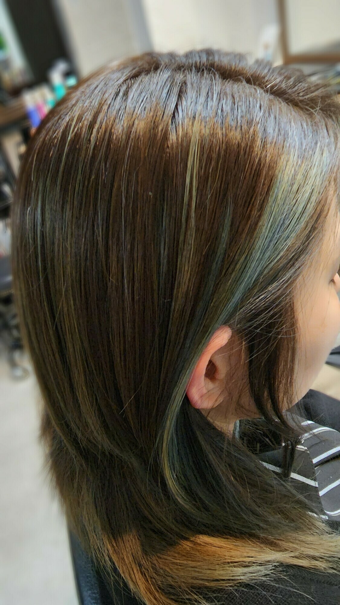 ハイライトの箇所にはキレイなブルーグリーンが入りハイライト以外の所にはカーキーベージュのやわらかさが感じられます↓↓↓