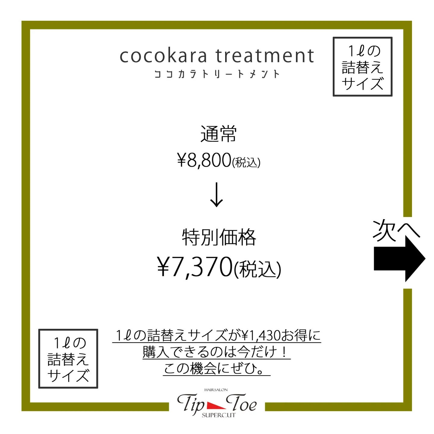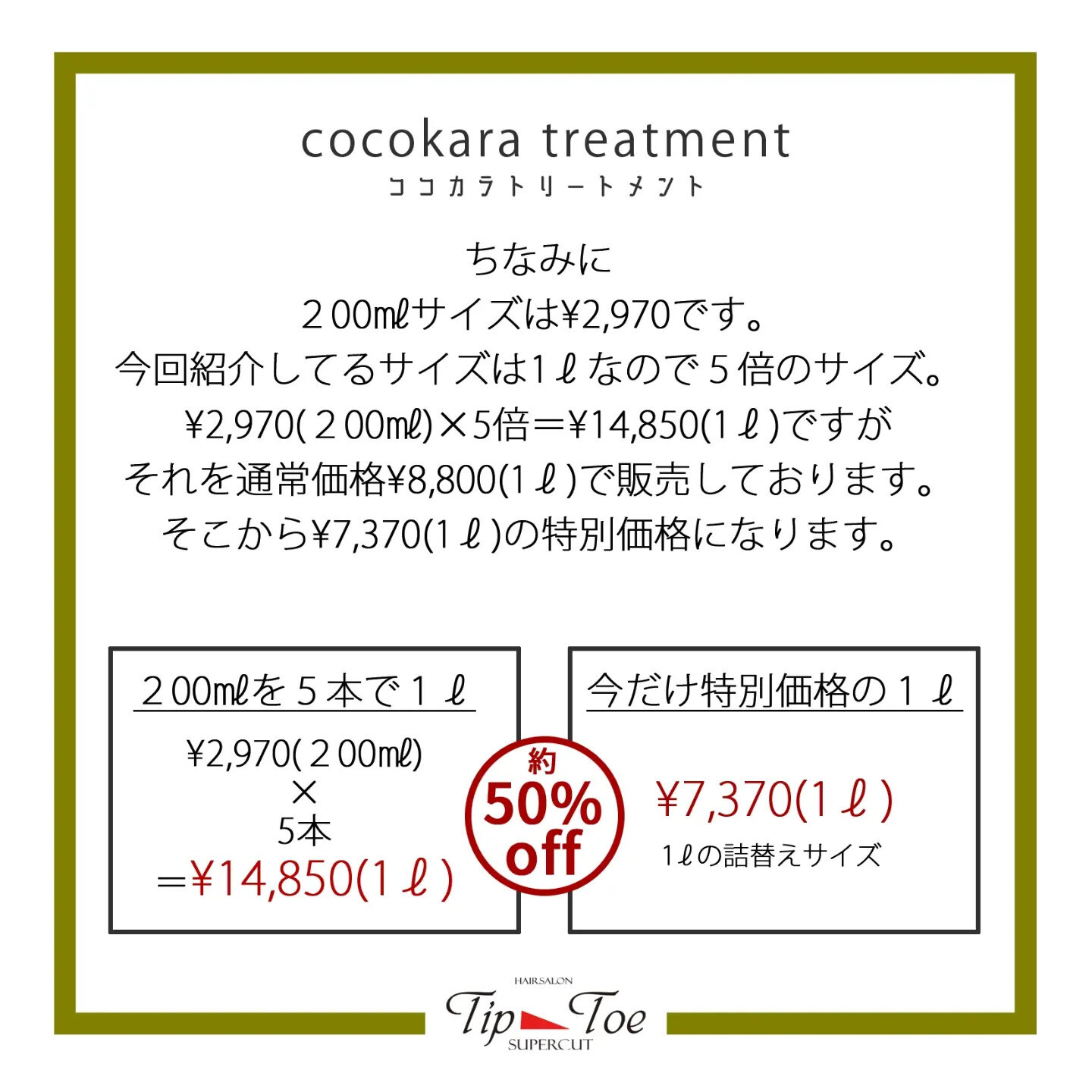 スーパーカットでは自社ブランドのシャンプーやトリートメントをそろえているのですが、その中から特に人気な商品の【ココカラトリートメント】を今だけお得な価格で販売しております😊