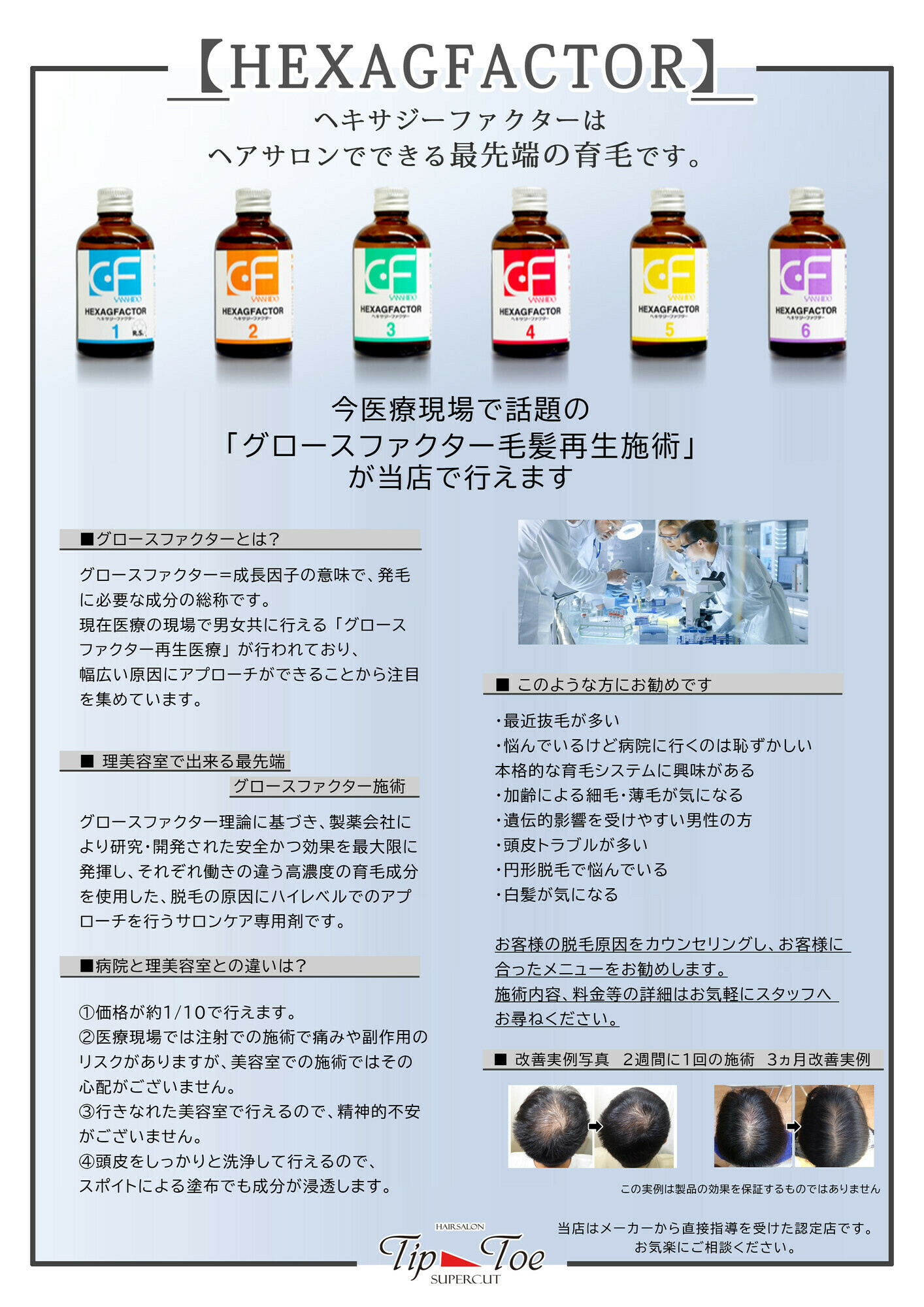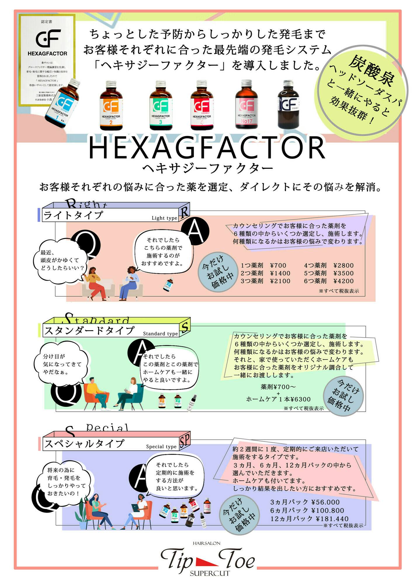ヘキサジーファクターはお客様のお悩みにあった薬剤でダイレクトに解消されます。