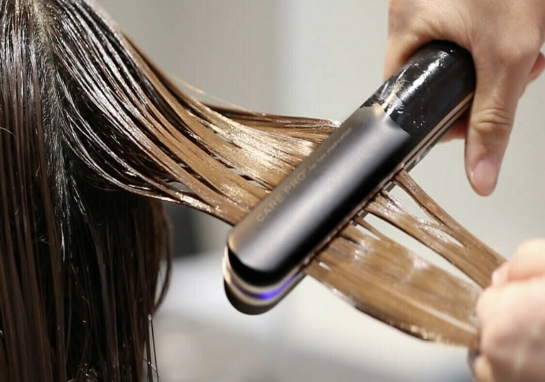 超音波トリートメントはトリートメント剤を髪につけた後、専用のアイロンでトリートメントの成分を髪の浸透させることにより高い効果が期待できる仕組みです。専用アイロンは1秒間に100万回ほどの振動が発生し、トリートメントの薬剤の分子量を細かくします。その結果、トリートメントの成分の浸透力が高まり、アイロンを通さずにトリートメントした場合よりも高い効果が期待できます。