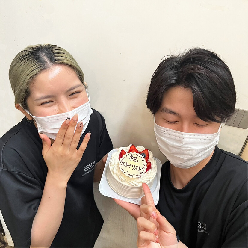 スタイリストお祝いのケーキを頂きました!(高橋.鳴瀧)
