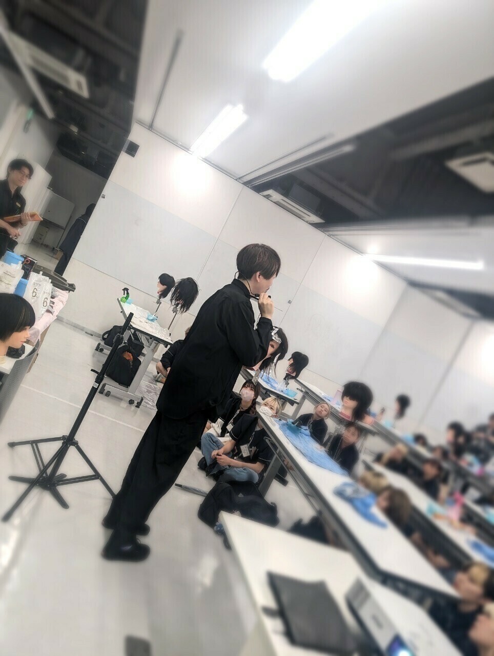 カラー授業はおもにブリーチを使ったテクニックで、これからコンテストなど控えている生徒さん達もグラデーションカラーやバレイヤージュなどさまざまなテクニックにチャレンジしていました!皆さん、楽しみながら本当に真剣に取り組んでいました。生徒たちはカラーリングが大好きなんですね!コンテストも頑張ってください!!