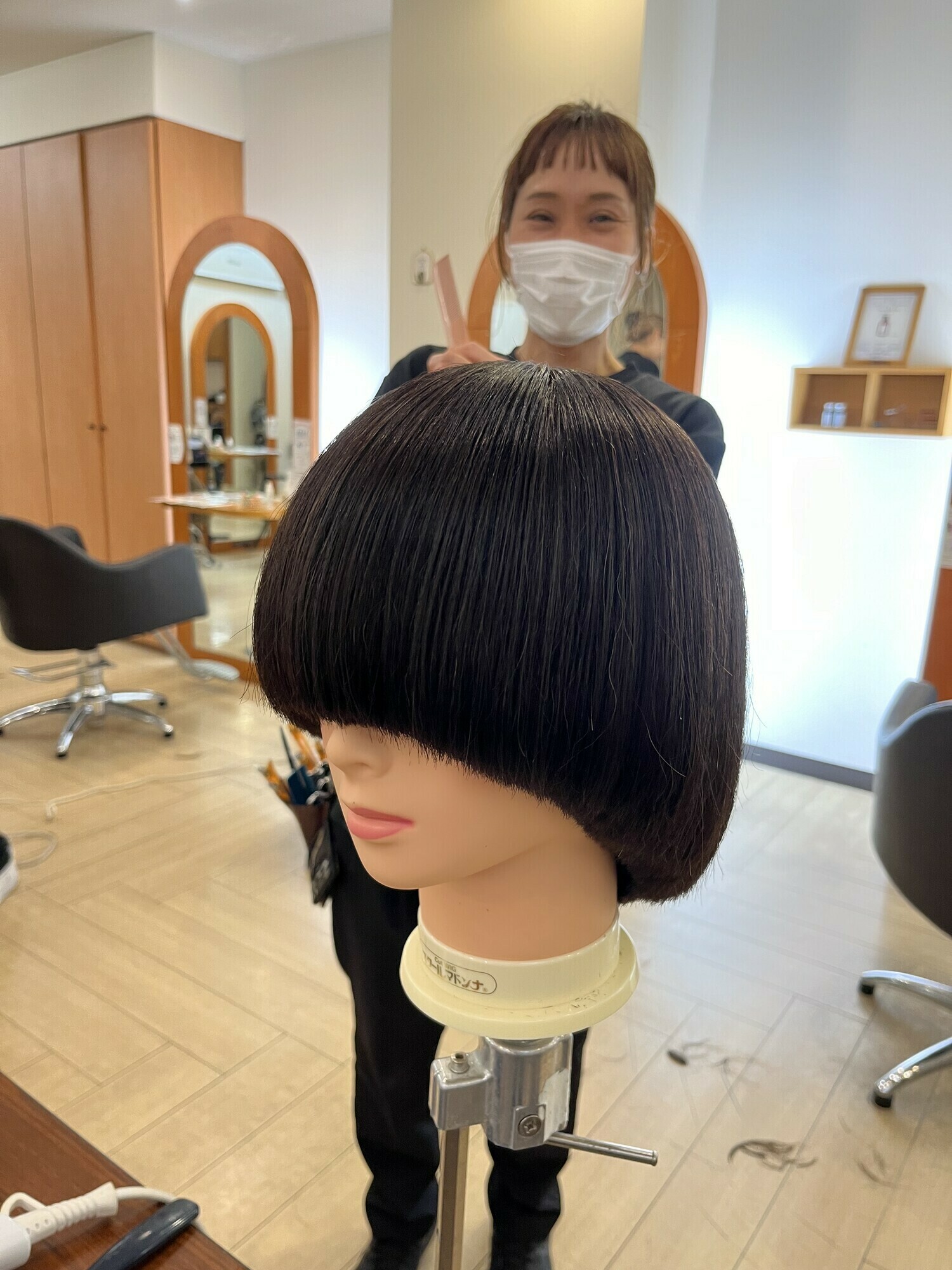 マッシュルームカットのポイントをおさえながら丁寧に作っていました。