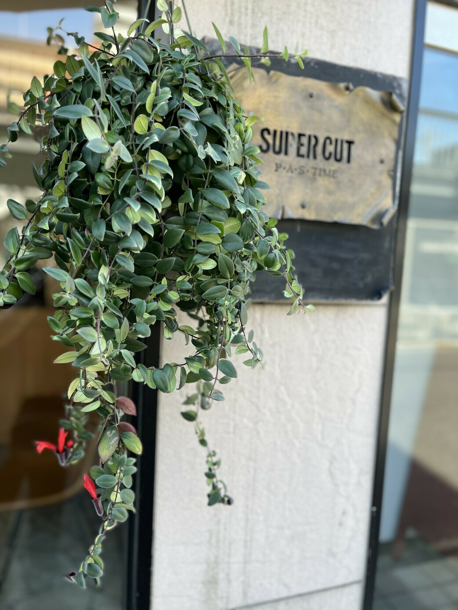 今回の『エスキナンサス』いかがでしたでしょうか?店には色違いの2種類あります。たまに外に吊らさげたり、シャンプー台の壁にぶら下げたりします。もちろん、お手入れは毎日欠かさずしています。臼井店にはまだまだご紹介したい植物たちがたくさんいますので次回のNO FROWER ,NO LIFE