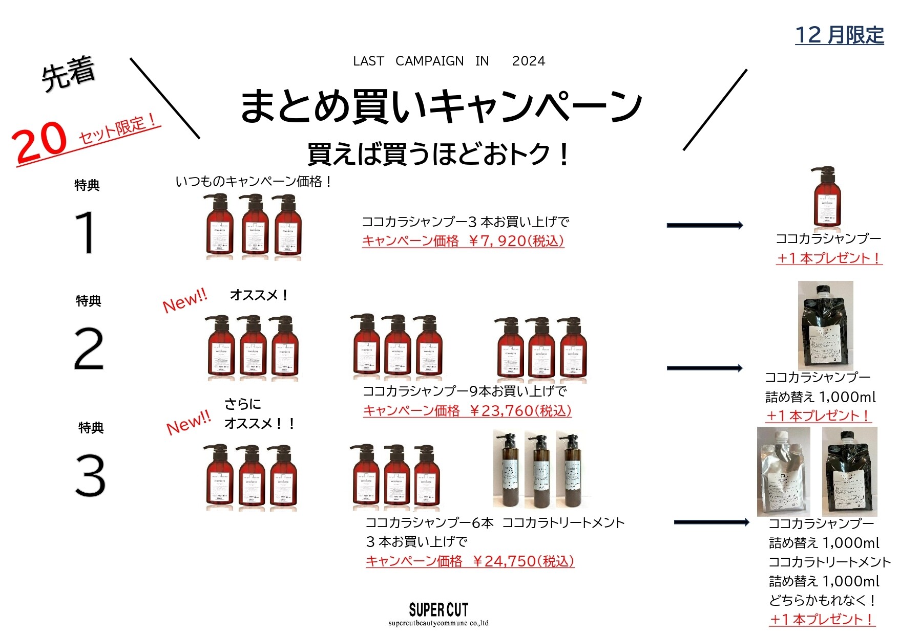 12月は毎年恒例のSUPERCUTオリジナルブランドキャンペーン実施中です!!通常よりかなりお買い得になっていますので是非この機会に!!