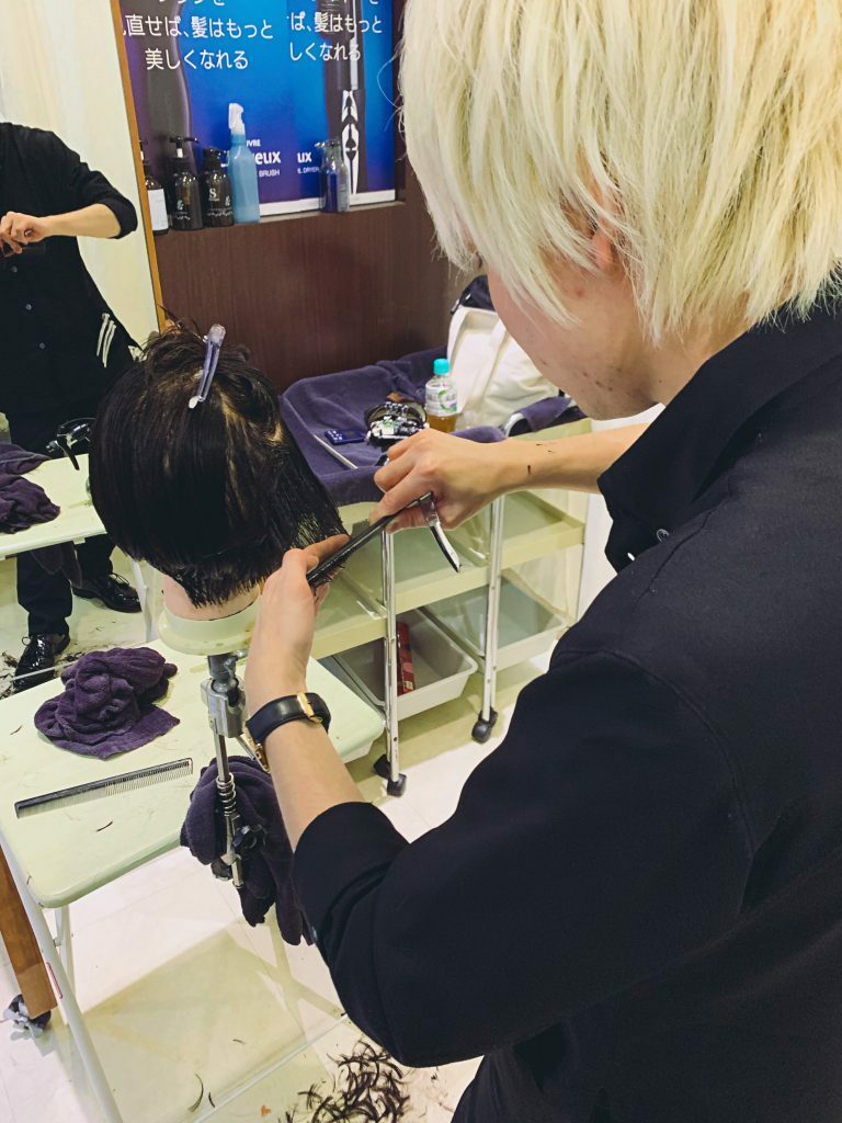 国家試験の課題である技術は、すべての土台となるカットにおいて、立ち位置や引き出し方などでつながってくるということをお伝えすると、生徒のみなさんは驚いて、「苦手だけど頑張ります」と言ってくれました。