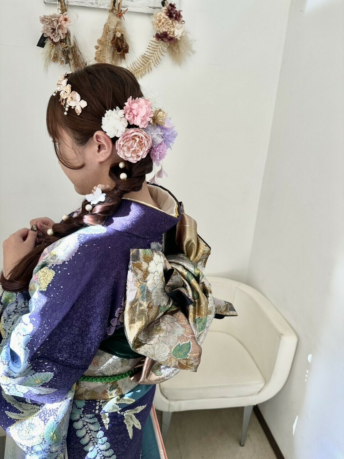 tip&toe SUPERCUTでは毎年成人式の御支度を承っております。2027年度の予約もすでに受け付けてます。ヘアセットのみでも可能です。是非お問い合わせください