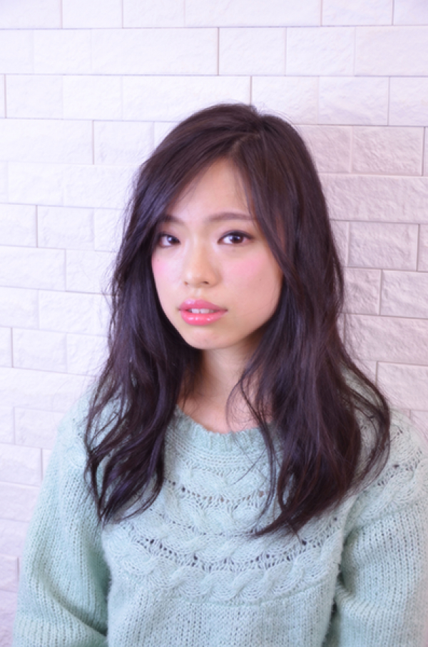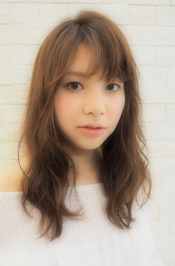 - 根元からラフにドライし中間から毛先にトリートメントワックスを揉みこむようにつけ、部分的に毛先をつまんで散らして完成。